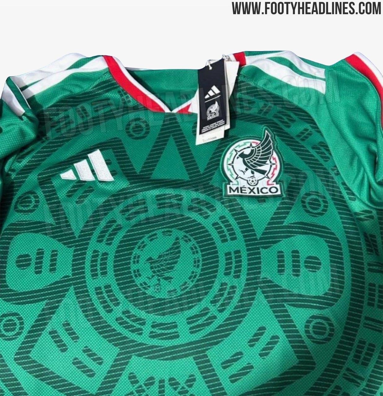 El diseño recupera elementos históricos, como referencias a la camiseta utilizada en Francia 1998, pero incorpora detalles modernos que resaltan la identidad mexicana. Entre ellos, un calendario azteca al frente, vivos en blanco y rojo, logo de Adidas en blanco, cuello en ‘v’ con detalles rojos y borde blanco.