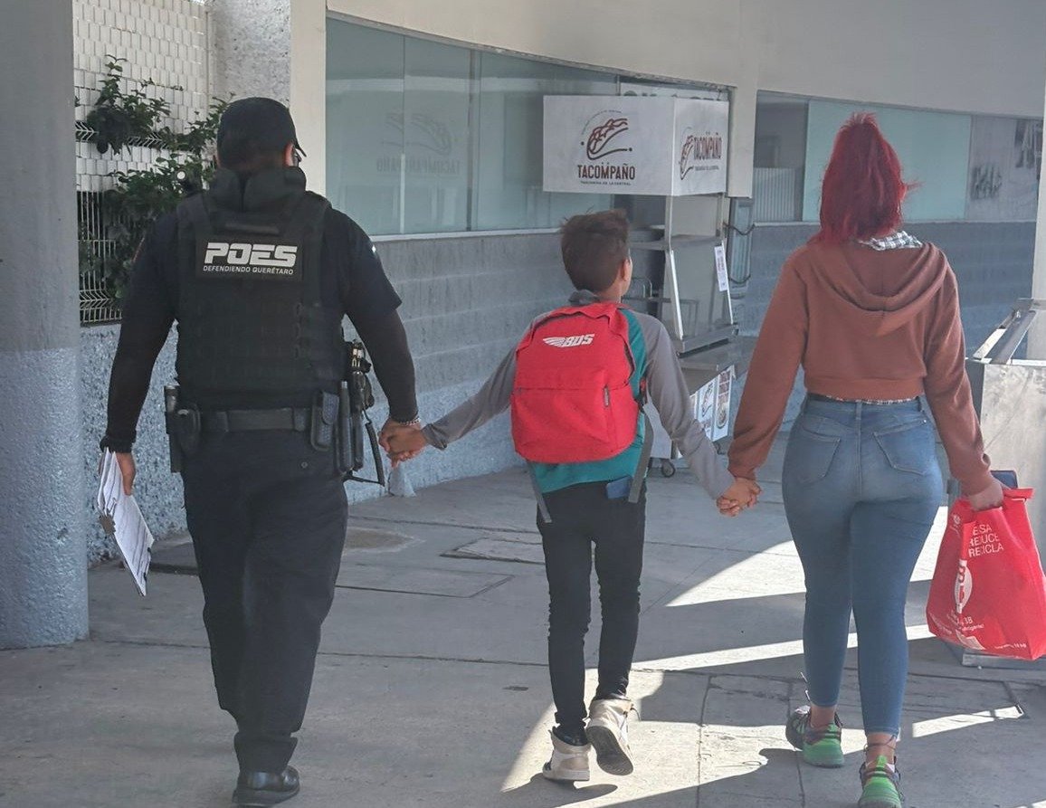 Elementos del Grupo de Atención a Víctimas de la Policía Estatal se presentaron en la Terminal de Autobuses de Querétaro tras recibir un reporte sobre un menor que intentaba viajar solo a Celaya, Guanajuato.