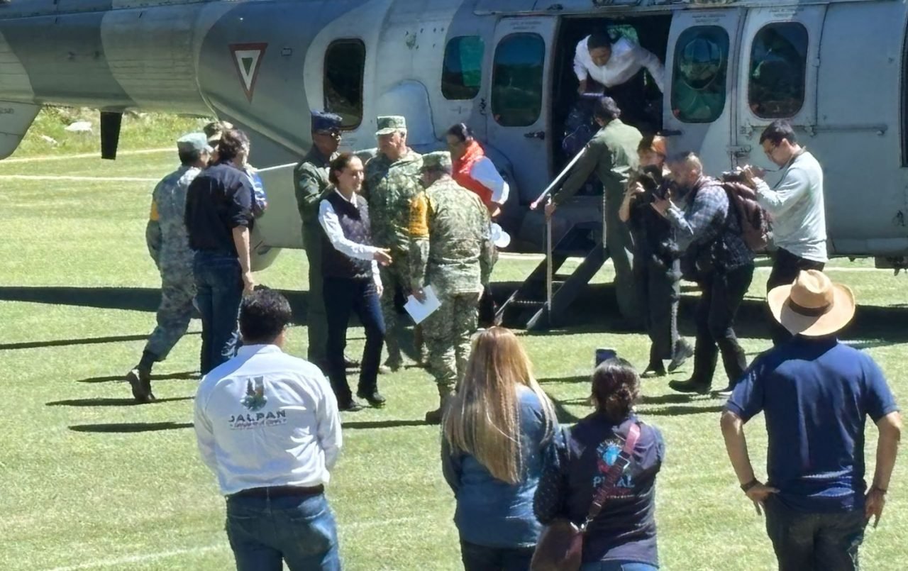 Alrededor de las 12:30 del mediodía, la mandataria llegó en helicóptero a la comunidad de Río Escanela, donde fue recibida con aplausos de “¡Presidenta, presidenta!” por parte de los vecinos, quienes agradecieron su presencia.